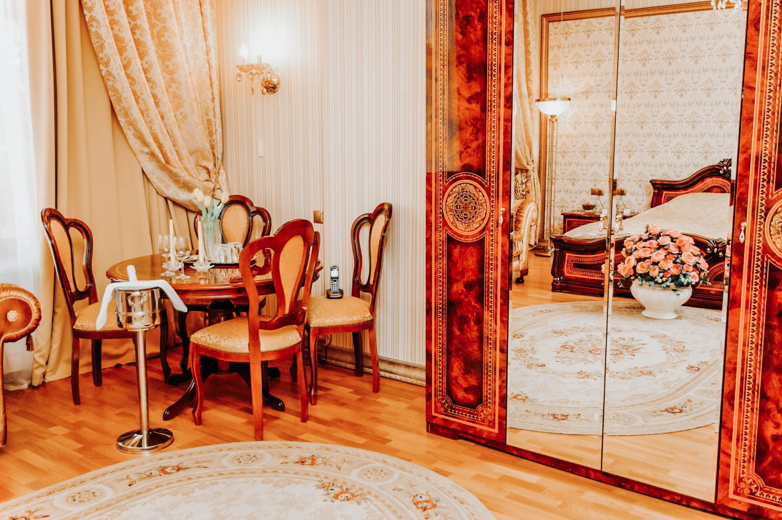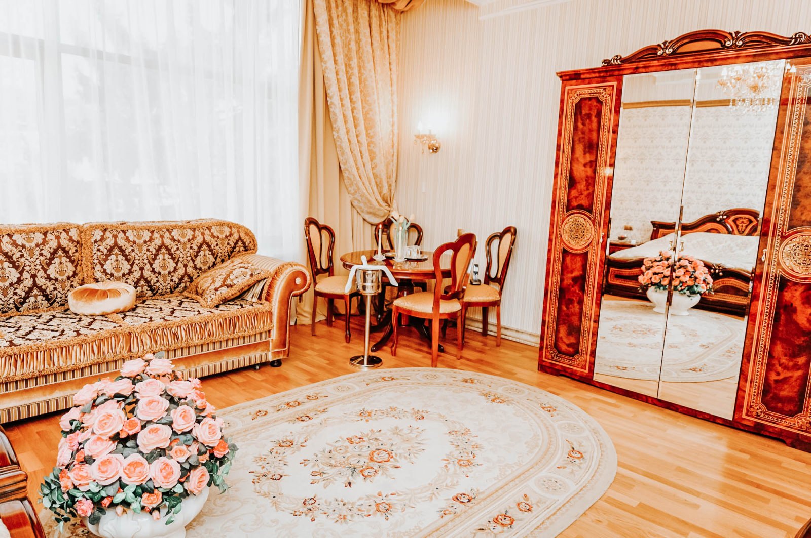Номер площадью 45 кв.м оснащен Wi-Fi. Для сна предусмотрена двуспальная кровать.